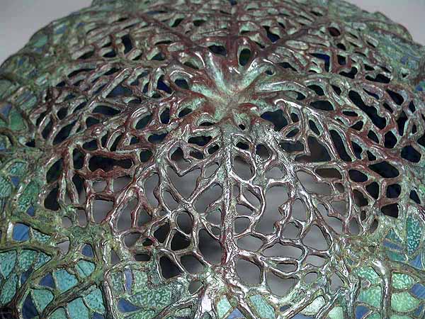 18" BLUE/ PINK WISTERIA leaded glass and bronze Tiffany lamp #342