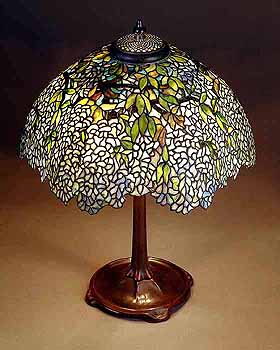 22" LABURNUM (blue) leaded glass and bronze Tiffany Lamp #1539 & Bronze casted large Stick base #531
