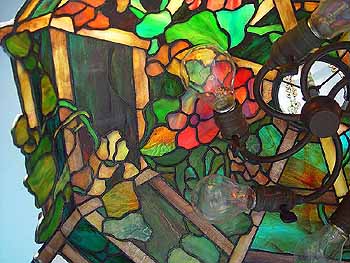 25" NASTURTIUM TRELLIS #607 Leaded glass and bronze Tiffany octagonal lamp shade