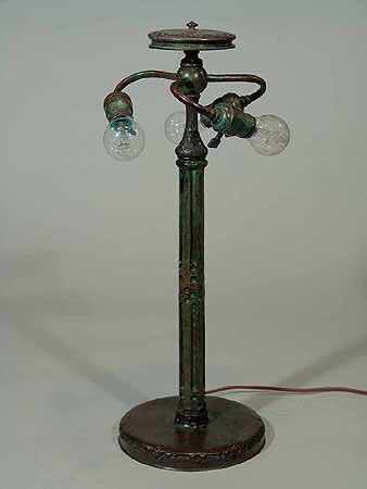 The suface of the lamp base and sockets are patinated with brown /dark green- brown Tiffany patina made in our Studio using the original recipe handed down by Tiffany Studios New York.