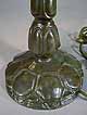 This base is wired according to US safety standards. It comes ready to use in the USA with three turn key lamp sockets and new old style cloth covered lamp cord. Other standards of electrification are available at no extra cost. The suface of the lamp base and sockets are patinated with brown /dark green- brown Tiffany patina made in our Studio using the original recipe handed down by Tiffany Studios New York. No lacquer is used in the patination process.