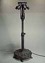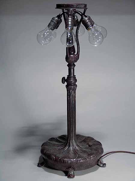 This base is wired according to US safety standards. It comes ready to use in the USA with new old style cloth covered lamp cord and standard US lamp sockets. Other standards of electrification are available at no extra cost. The suface of the lamp base and sockets are patinated with brown /dark green- brown Tiffany patina made in our Studio using the original recipe handed down by Tiffany Studios New York. No lacquer is used in the patination process.