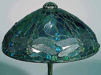 14" Dragonfly Tiffany Lamp #1585 on Glass Mosaic bronze base #356