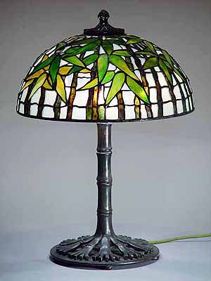 16" Black Bamboo Tiffany Lamp Shade #1443 and Bronze Base #480