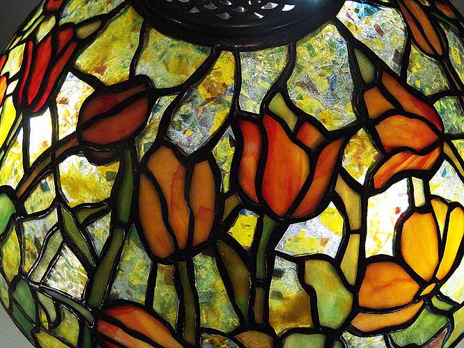 16" Tulip Tiffany Lamp #1456 on Telescoping lions paw bronze base #481