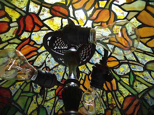 16" Tulip Tiffany Lamp #1456 on antique Square bronze base #444