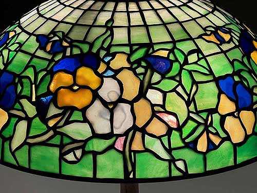 16" Pansy (white/ green) leaded glass and bronze Tiffany Lamp on No. 533 Stick base