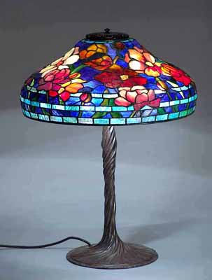 18" Peony Tiffany Lamp shade #1475 on Twisted Vine bronze casted lamp base #445